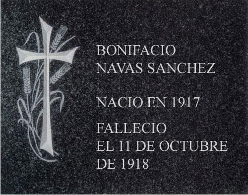 Nació en 1917. Murió el 11 de Octubre de 1918 con 1 año. Bonifacio murio de la gripe de 1918.